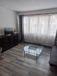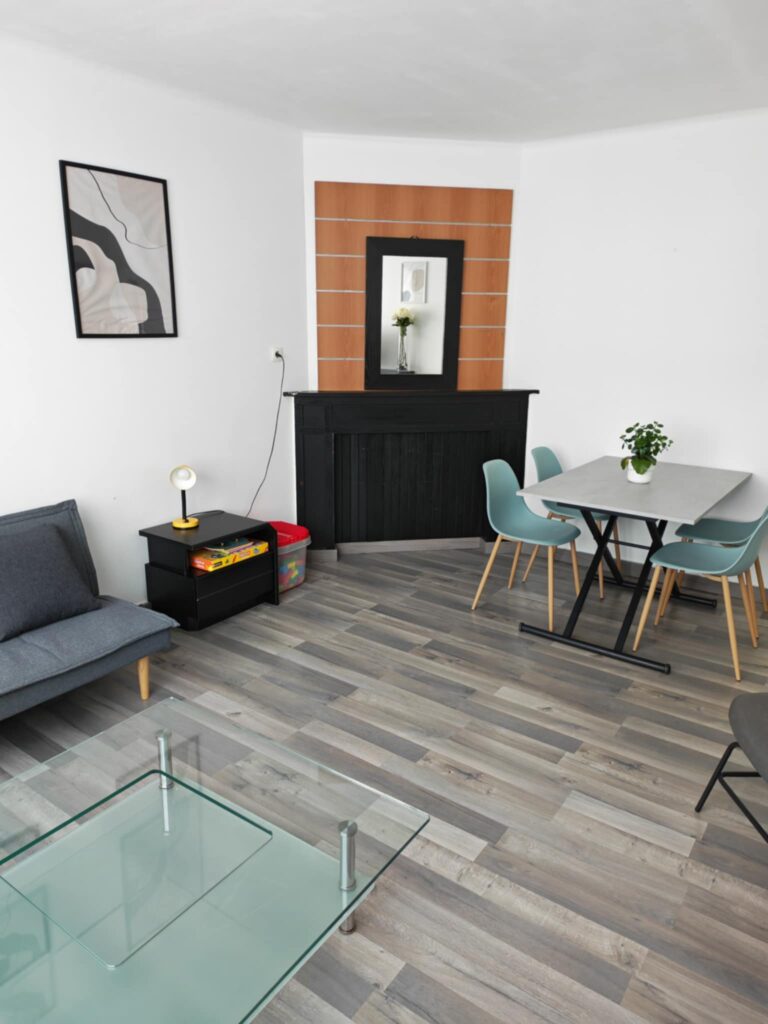 Vous y trouverez aussi un salon séjour avec un canapé convertible qui peu accueillir 1 personne, une table à manger avec quatre chaises, un buffet contenant des jeux de société et livres pour vous divertir, la télévision connecté avec Netflix et Disney plus, et vous avez la wifi.