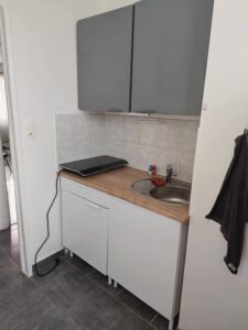 L’appart est composé d’une chambre avec deux lit 900/200, d’un dressing et évier.